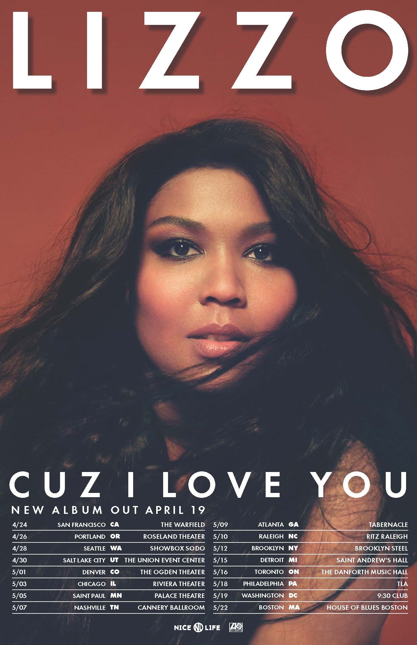 All fans pre-ordering the album will receive exclusive first access to tickets for Lizzo’s upcoming “Cuz I Love You Tour,” with North American headline dates set to get April 24th at The Warfield in San Francisco, CA. Fan pre-sales began on February 4th; general on-sale begins tomorrow, February 8th. American Express® Card Members can purchase tickets in select markets before the general public through Thursday, January 7 at 10pm local time.