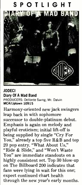 That same year, Jodeci performed on “Uptown MTV Unplugged” and its cover of Stevie Wonder’s “Lately” became the subsequent album’s biggest hit, reaching gold, and a #1 R&B/#4 pop single.