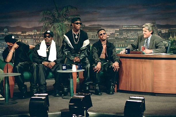 (THE TONIGHT SHOW WITH JAY LENO — Episode 421 — Pictured: (l-r) Singer Devante Swing, Cedric ‘K-Ci’ Hailey, Dalvin Degrale and Joel ‘JoJo Hailey of musical guest Jodeci during an interview with host Jay Leno on March 16, 1994 — Photo by: Margaret Norton/NBCU Photo Bank/NBCUniversal via Getty Images via Getty Images)
