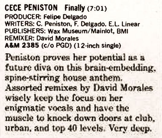 By the end of 1993, CeCe Peniston was named #1 Billboard Hot Dance Music/Club Play Artist.