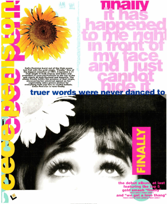 Her first single ever released in 1991, “Finally,” immediately thrust her into the music industry world-wide and CeCe has continued with success ever since.