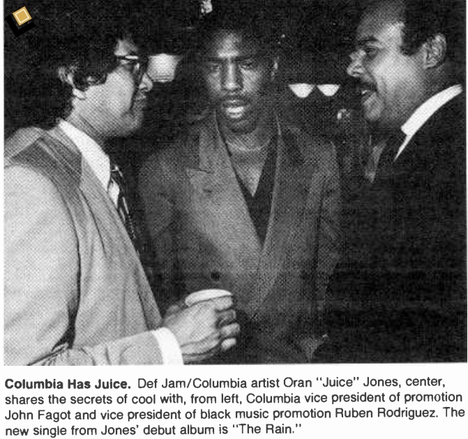 Columbia exec Ruben Rodriguez, said at the time, “This will give people a chance to see that Oran `Juice’ Jones is more than just a musical talent, he’s also a visual talent with tremendous charisma.”