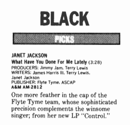 The first single was “What Have You Done For Me Lately” that reached #4 on the Billboard Hot 100.